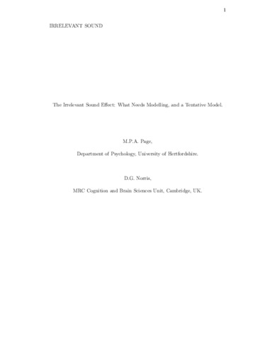 The irrelevant sound effect: What needs modelling and a tentative model.
